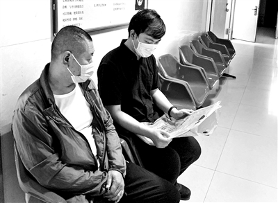高申(右)陪父亲做检查