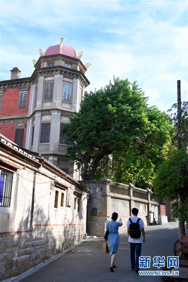 9月18日,陈信彦(右)、杨嘉林走在厦门鼓浪屿的街巷中。新华社记者姜克红摄