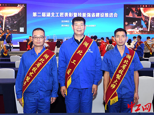 中工网讯(工人日报-中工网记者 刘静 常岑)9月28日,由湖北省人民政府主办、湖北省人力资源和社会保障厅承办的第二届湖北工匠表彰暨技能强省建设推进会在光谷科技会展中心召开。中国一冶钢构公司赵宗合、吴勇刚分别荣获“湖北工匠”、“湖北省技能大师”称号,中国一冶冶建公司丁忠盛荣获“湖北省技术能手”称号。