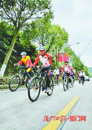 厦门日报讯(文/图 记者 罗子泓 张珺 通讯员 杨心亮)昨日,一支队员平均年龄超60岁的骑行队,骑车穿过211个弯,来到同安区海拔985米高的军营村,以低碳环保的出行方式欢度国庆。