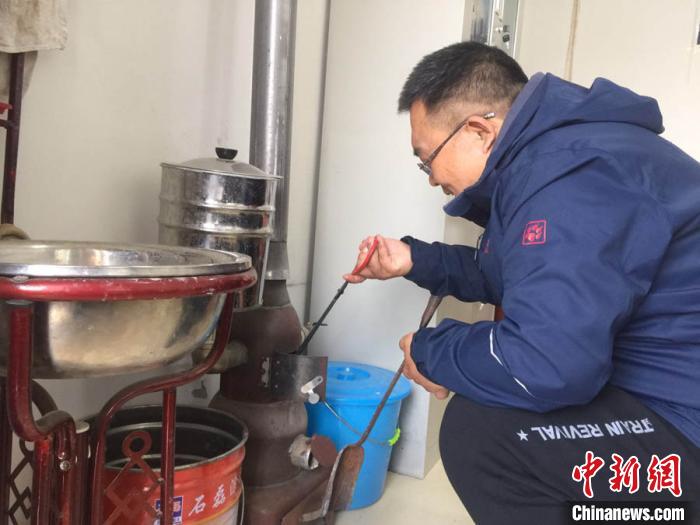 中新网兰州11月1日电 (记者 侯志雄)清晨的黄土塬,秋风瑟瑟。甘肃庆阳市镇原县太平镇彭阳村部,王峰手持炉铲给小火炉加了几块煤,他拍了拍手上的炉灰对中新网记者说,“塬上风大,晚上小火炉很管用。”