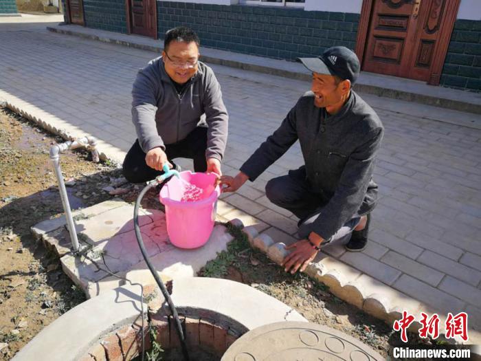 作为驻村干部王峰经常入户了解情况。图为他在试用村民家中自来水情况。 侯志雄 摄