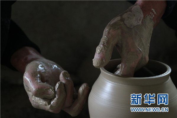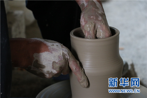 潘龙正在拉坯。新华社记者 郑明鸿 摄