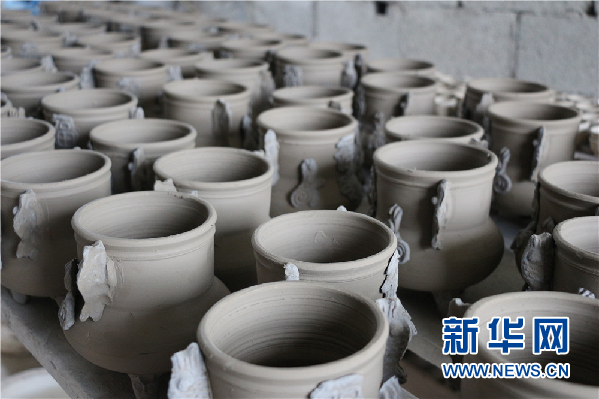 正在风干的陶坯。新华社记者 郑明鸿 摄