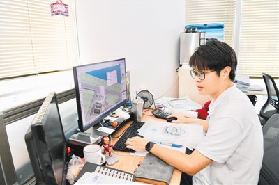 陈信彦在公司查看设计图稿。