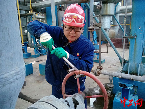 镜头转回国庆、中秋双节的第一天,下午15时,单伟芳正在装置区巡检,突然手腕一凉,一滴液体落在手腕上,随即一股刺激性气味钻进鼻子,他立即意识到是甲醇,头脑中不禁警铃大作!