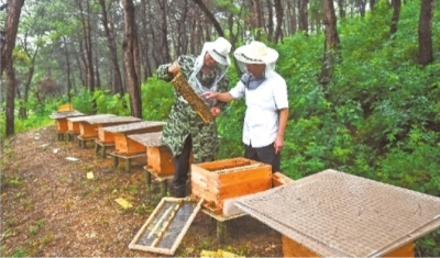 农科院专家指导村民养蜜蜂。长江日报记者许魏巍 摄