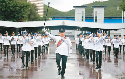 每年香港回归祖国纪念日和国庆节的升旗仪式,必定有香港警察乐队的身影。升旗仪式前的几个月,乐队会制定多个应对突发情况的预备方案,升旗仪式前的一个星期,每个预备方案都要进行测试。
