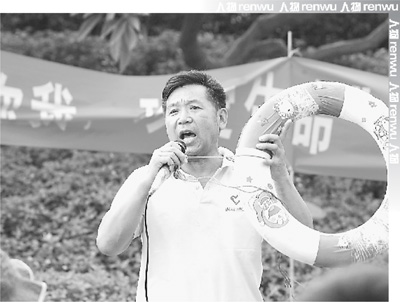 天色阴沉,飘着零星小雨,风也渐渐大了起来。刚刚午睡被叫醒的赵喜昌(见图,赵喜昌正在给大家讲救生知识。资料照片)正乘着公安的快艇逆东江而上,水花飞溅起来,打在他匆忙穿起的衣服上。