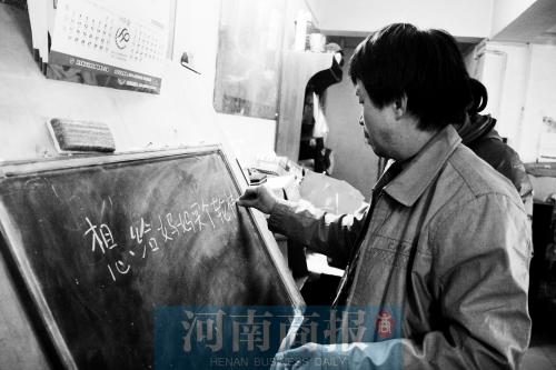 无法用语言进行沟通,记者让他们写下自己的心愿。夫妻俩打手势简单“商量”后,在屋里的小黑板上写下: