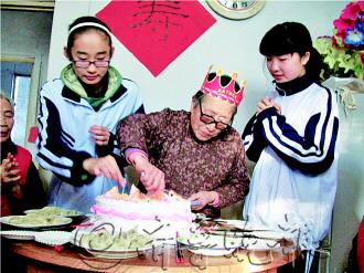 26日上午,环翠楼街道办塔山社区李爱珍的家中异常热闹,殷树山夫妇等几位老人及塔山中学的10名师生共同为她庆祝89岁高寿。殷树山夫妇为她买了生日蛋糕,塔山中学的学生送来贺卡及“寿”字礼物。小屋内,大家一起吃蛋糕、饺子,唱生日歌,好不热闹。而这样的情景已经持续了16年,作为独居老人的李爱珍,已经连续16年享受大家送给她的生日宴会了。
