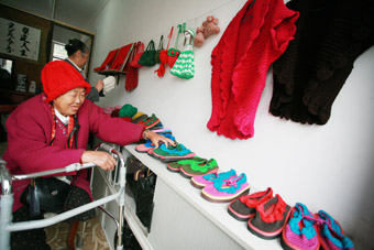 北京玉锦绣工艺品店近日在昌平区兴寿镇香屯村开张迎客,店内手工编织的鞋、棉拖、小挂件、衣帽等琳琅满目的工艺品,吸引了不少村民前来观赏。