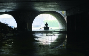 龙蟠中路上车水马龙,川流不息的车辆。而位于七里街附近的秦淮河桥下,却显得很安静,70岁的刘师傅划着自己做的小船,往返于岸边和水中的桥墩。7只流浪到此的猫、狗在钢筋水泥的都市里寻得一处宁静的家。