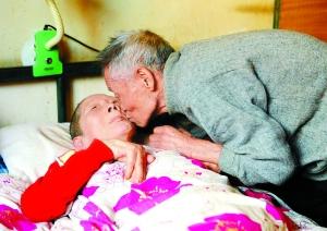 来不及喘匀气,陈大爷赶紧来到老伴儿床前,捧着大妈的脸轻轻地亲了一下,“我回来了,你看看我,高兴了吗?”大妈虽没办法说话,甚至做不出表情,但嘴里还是发出了微弱的“呜呜”声。“她能认出我,什么事儿心里明镜儿似的。”陈大爷转过身,将笑容中的苦涩隐藏了起来。