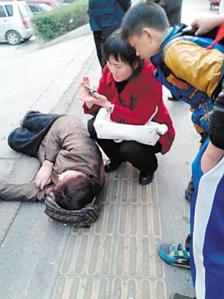 看见老人倒在地上,陈伟群当即上前查看伤情并拨打120。