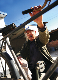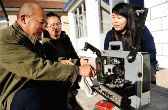 在延庆县大榆树镇,老放映员刘山林在自家的院子里收拾整理他的电影放映机、音响。当他从家里的库房把老式放映机搬到院子里晾晒、擦拭时引来了很多90后年轻人围观。村里的一位小姑娘说,她见过录像机、投影仪,这个放映胶片的老式放映机还真是头一回见到。刘山林,今年64岁。1977年,他在大榆树镇计生办当主任。跟农村妇女打了7年的交道后,1981年他主动要求到放映队放电影。说是放映队,其实就他一个人。这一干就是32年。(陈艺)