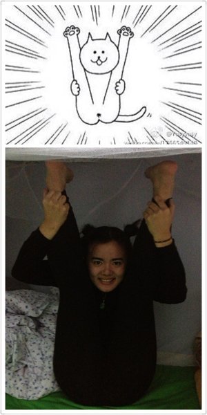 11月18日,真人版猫咪表情走红。一位妹子在宿舍用肢体模仿猫咪的动作,网友争相围观,笑称:这位妹子简直是用生命在模仿,果然功力深厚。