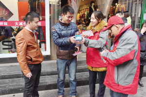 志愿者工业大学学生逯宝华告诉记者,23日下午,一名路过的女士上前直接质问活动现场的志愿者:“你们是骗子吧?”随后,志愿者进行了解释,并把活动随苹果赠送的爱心贺卡拿出来给她看。离开不久后,这名女士又笑眯眯地回到了活动现场,并亲手把上百个包装袋送到志愿者手中。原来这位女士回去对着爱心贺卡上的二维码“扫一扫”,从网上查到了相关活动和青城阳光义工的介绍,终于知道自己找错了“打假”对象,她看到志愿者售卖的苹果有时候不好带走,就送来了很多手提包装袋。