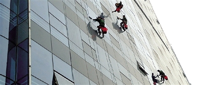 “从事高空作业除了就业许可证,还要有安全局发的高空作业证。在登高作业上岗前需要经过严格的身体检查,患恐高症、高血压、心脏病等疾病的人员是不能从事登高作业的,体重在70公斤以上的人不能从事高空作业。另外,登高作业还要受自然气候的限制,比如外墙清洗必须要在良好的气候条件下进行,风力4级以上要停止工作,雨、雪、雾、能见度差以及气温在35℃以上和0℃以下时,也不适合做外墙清洗。”河南省清洗保洁行业协会秘书长史治国介绍说。