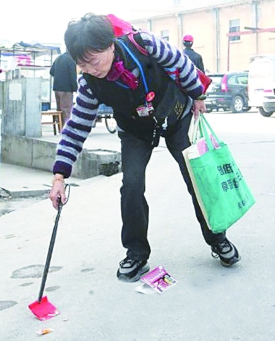一张废纸、一个烟头、一块果皮,只要看到地上有垃圾,她就要捡起来。