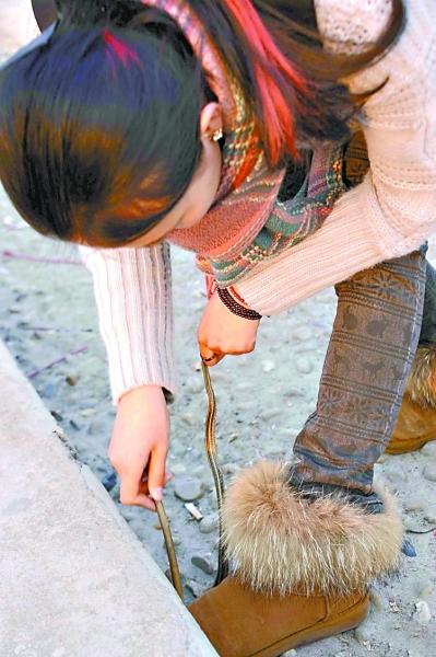 昨日有网友在长江网上发帖称:真心佩服啊,江滩公园里有美女空手擒蛇!