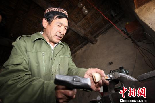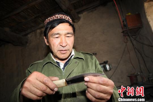 中新网乌鲁木齐2月8日电“等我儿子大一些了,就教他学制作小刀,不能让手工制刀技艺在我手中失传。”58岁的新疆哈巴河县哈萨克族制刀人司马义·赛平这样说道。