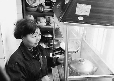 丁水彬在打扫厨房。本报记者 方 敏摄