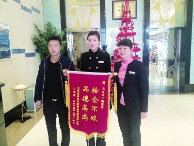 昨日下午,江先生派专人到酒店送锦旗(右为徐慧)。