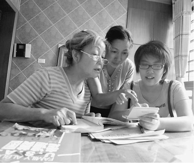 李建珍和婆婆一起向读大学的女儿学英语。资料照片