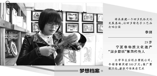 “儿时陪着母亲创作剪纸的过程,现在仍然历历在目,在大学学习广告,考研,其实都是为了一个目标,回乡创业,把剪纸发扬光大。所以即便考研不成功,还是要干。”原来,早在学生时期,她便有了一个明确的目标,曲曲折折的路径,都是通往一个目的地。