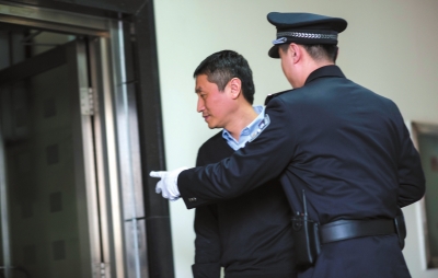 庭审完毕,韩立锋被带走。记者蒲东峰摄