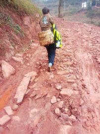 为了让儿子正常上学,无论严寒酷暑,余旭康每天清晨6点就要起床,7点钟准时背着儿子从家中出发,爬坡上坎步行2个小时的山路到达7公里外的凤西小学上学。下午4点,再到学校门口接儿子回家。半年来,为了接送儿子,余旭康每天都要走上将近6个小时的山路。