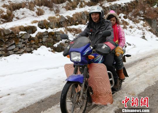 骑车送李雪莲到11公里外的小学 杜强 摄