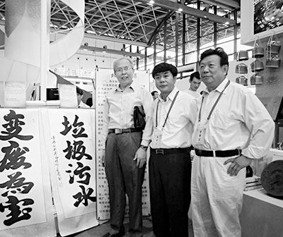 蒙汉康与总工程师熊汉夫(右)、工程师杨俊义(左)在广西科技成果展会上