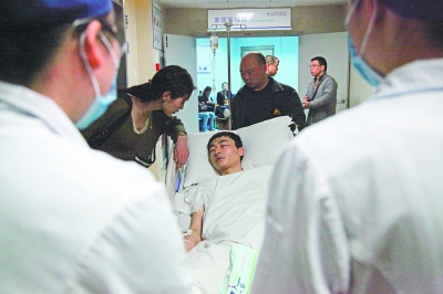 昨天中午,在汉阳医院重症监护室外,焦急等待的谭智龙的妈妈杨女士终于舒了口气,护士告诉她,她的儿子脱离生命危险,可以转到普通病房了。这是儿子受伤36小时以来,杨女士听到的第一个好消息。