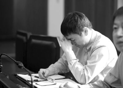被告在法庭上一度悲伤抹眼泪。京华时报记者蒲东峰摄