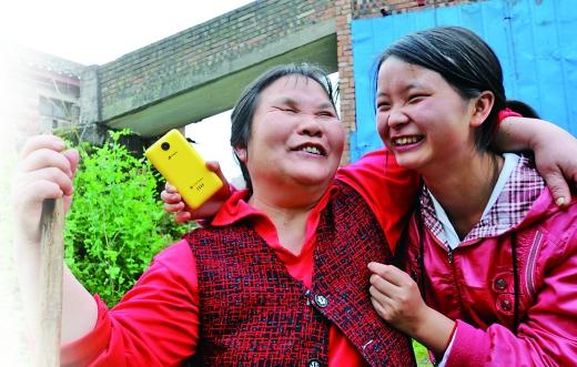 妈妈最喜欢听蒋大为的歌曲,唐洪就用手机放给妈妈听。 本版图/重庆晨报记者 杨新宇 摄