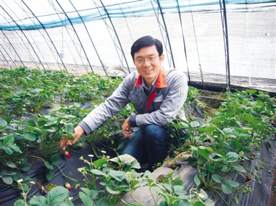 今天的草莓园里,尚未采摘的果实散发着醉人的甜香气息。3年前,留学法国5年、学习信息专业的贾建军回到了国内,“在欧洲的时候,我勤工俭学的一种重要方式就是去种植园打短期工。法国是个农业大国,农业全部实现了机械化和产业化,具有很多先进的农业生产方式和生产理念。我当时就想,为什么中国的农业不能像这样发展呢?所以在决定种植草莓后,我就选择了一条企业化运作的道路。先从网上寻找合适的进口品种,最后选择了现在合作的这家意大利公司,引进了三种意大利草莓的品种和种植技术。同时我也负责这几个品种在华北地区的推广。”贾建军对本报记者说。