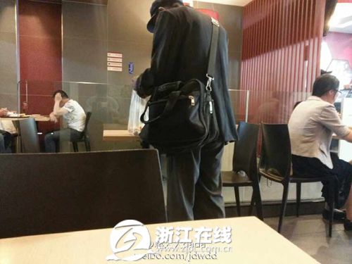 时间是5月3日的下午。杭州闹市的一家知名的餐饮连锁店里,一位八旬老人,在一桌客人吃完离开后,踱到桌旁,拿起了客人留下的半根油条塞进了兜里。