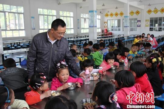 绝症教师周良敏在食堂照顾孩子们进餐 姚祯发 摄