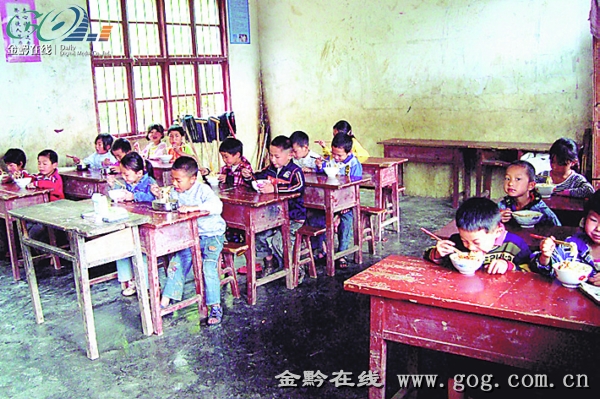 曹家小学学生在吃营养餐