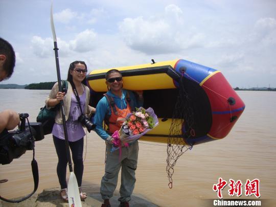 采访结束后,闪米特又换了一艘海洋艇下水,当天下午四点半,闪米特在珠海大桥段登陆,正式对外宣布成功完成了2400多公里的珠江漂流探险活动。