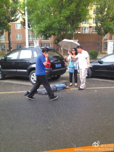 昨天下午,有网友发微博称,通州区大方居小区南门东侧,一位老人被公交车撞倒在路边,一名女子为其撑伞挡雨,彰显高尚品格,并附有图片。
