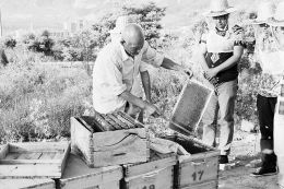 冯天保老人从1962年开始养蜂,半个世纪的养蜂生活让他早已走遍整个山西。其养蜂经验和技术在同行中享有声誉,他自豪地说:“临汾48家养蜂场都叫我师父呢。”今年5月份,为了将手艺传承下来,老人带着自己的60箱“小蜂儿”与在太原打工的孙子小冯一起来到中北大学后面的虎头山上,搭起了小房子,说以后都不迁徙了。