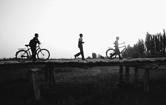 新疆喀什疏勒县亚曼牙乡协开尔巴格3村小学的孩子们正在上学路上。没有暴恐才有安宁的生活。CFP供图