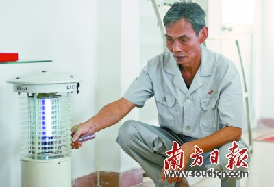 王国强研发的灭蚊灯被广泛应用 也用在礼乐葡萄场进行灭蚊虫。陈春花 摄