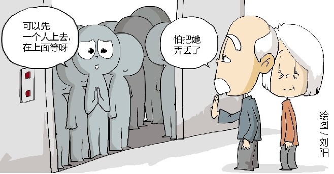 电梯只能上一人,老夫妻同退出:“我怕把她弄丢了“(图)