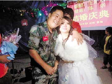 于是,婚期定在了8月19日。这天,两名女义工执意带陈华前往鲁甸县区的一家婚纱店简单“拾掇”了一下,顺便买了些窗花和鞭炮。村民们纷纷赶到最大的那顶帐篷里帮忙布置婚礼现场,还有村民主动拉电线、帮做饭。正好到老屋基村走访的镇长臧尔方闻讯后,立即答应村民的请求,担任这对义工夫妻的证婚人。