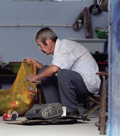 现在,他坚持一个人生活,平时除了雷打不动的“第二事业”——捡废品外,还会看书、听广播等。