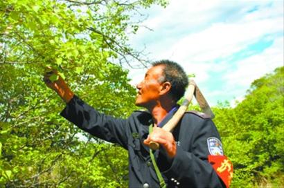 他爱山上的一草一木。总要嘱咐几句上山采野果的村民,别毁坏了树木。做护林员没少得到老伴支持。上山巡护离不开的老伙伴。
